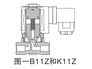 該閥代號Z系列,依據直接截止泄壓設計,閥分為常閉型和常開(kāi)型兩種。原理:常閉型(常態(tài)呈關(guān)閉狀態(tài)),當線(xiàn)圈通電時(shí)產(chǎn)生電磁力,使動(dòng)鐵芯克服彈簀力同靜鐵芯吸合直接開(kāi)啟閥,介質(zhì)通過(guò);當線(xiàn)圈斷電時(shí),電磁力消失,動(dòng)鐵芯在彈簧力的作用下復位,直接關(guān)閉閥口,介質(zhì)不通。直拉結構,動(dòng)作可靠,在零壓差和微真空下正常工作。常開(kāi)型工作原理正好相反。如圖一: B11Z和11Z系列電磁閥