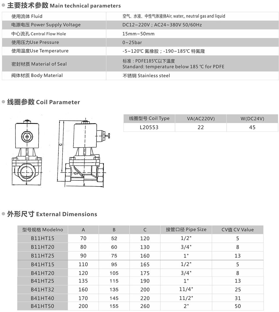 B41HT piston solenoid valve is widely used in military and aerospace industry. Shipbuilding industry, nuclear industry, petrochemical industry,electric power, chemistry, light industry, machinery, scientific research,drying equipment, food, medical treatment, cleaning equipment,automatic control of pipeline media and other fields.